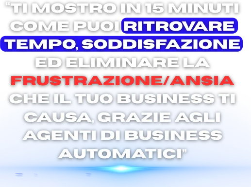 ➡️ Vedrai con i tuoi occhi i benefici concreti in termini di ore guadagnate, soldi in più a fine mese e meno stress, grazie all’implementazione di un agente di business automatico fatto su misura per te.